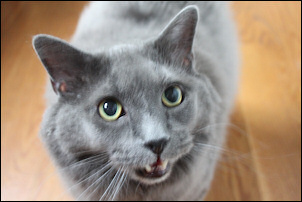 In the morning it's very active. When we come downstairs it will run towards us and with loud 'miauws' announce that it's hungry.