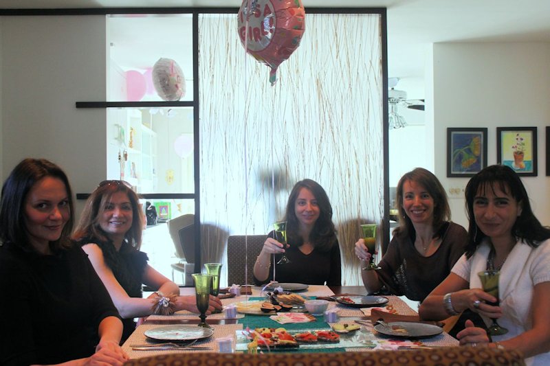 Early in the morning while Sasha was still upstairs we decorated the house and prepared the drinks and snacks for the party. The decorations were adorable: pink baby balloons, garlands of tiny diapers, tiny giraffes and elephants. The cake was also carefully chosen for the occasion. We got a lot of baby presents and the girls had a fun time at the party which was spiced up by champagne (apple cider for Sasha though). Thank you, Irena, this was a great surprise! Special thanks to Ilana who chose some of the decorations and took great pictures.