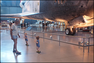 We were playing to go to the Frying Pan farm, to show the boys farm animals. When we arrived we saw that there was a big fair and the field that normally houses cows and horses was now a parking lot for fair workers. So we decided to skip the farm, and instead we went to the Air & Space Museum a few minutes down the road.
