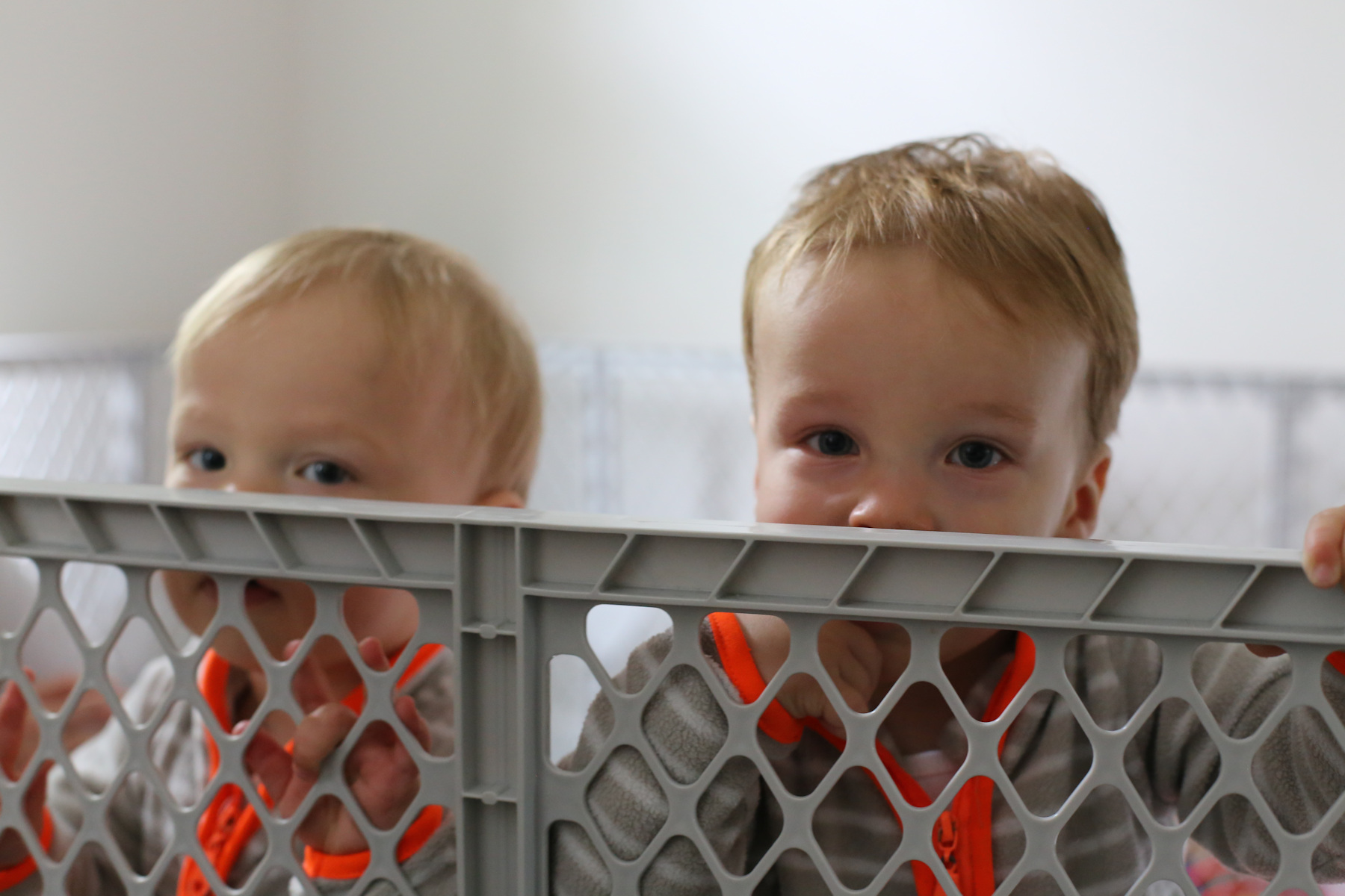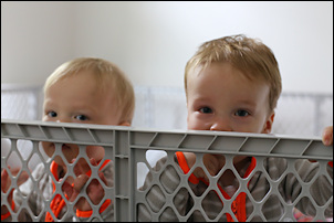 Adrian made his first step! The boys have been cruising for a while now, but while Sasha was in the playpen Adrian made a quick, independent step.