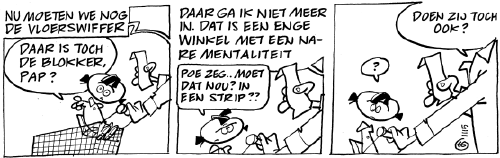 Let's see, the last thing we need is a broom. -- Don't we go to Blokker for that daddy? -- I won't go there anymore. It's a creepy shop with a nasty mentality. -- Oh come on, is this really necessary for in a comic? -- Well, that's how they do it, right?!