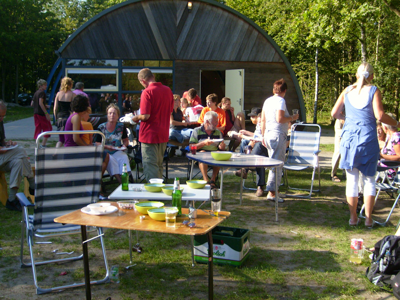 Saturday morning we prepared the caravan (travel trailer) and loaded it with the equipment, food and drinks we would need for the party. We picked up the cakes from and fresh bread and arrived the camping site in the Dijkgatsbos at 12.30 pm.