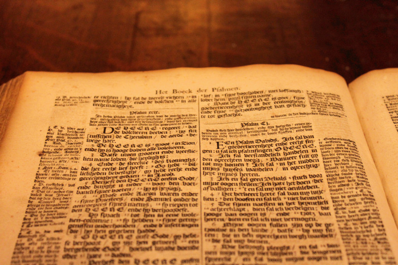 A Dutch bible in the church. Until 1824 services in the church were held in Dutch.