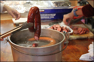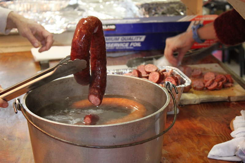 The highlights of the dinner for a number of first generation Dutch-Americans we spoke with were the stewed rabbit and the sauerkraut with authentic metworst. Good metworst is hard to find in the United States and this was the real thing. Metworst is more flavorful than Polish kielbasa and coarser consistency. Ken Nieuwenhuis shared with us the secret of the sausage: it's from the Market Basket, a specialty store in Franklin Lakes, New Jersey.