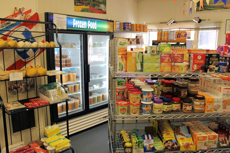 The biggest selling item are the Dutch cheeses in many varieties and are available for a sample -- "Ik zal hem even laten proeven because hij is zo lekker". The store carries a large supply of Indonesian spices and condiments, including the Dutch Conimex brand. The store has about 30 varieties of drop, Dutch licorice.