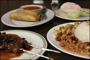 The nasi smells delicious, with a small whif of trassi. "We don't use too much", says Tan, "because most Americans don't like it". The sate is excellent and served with a great peanut sauce.