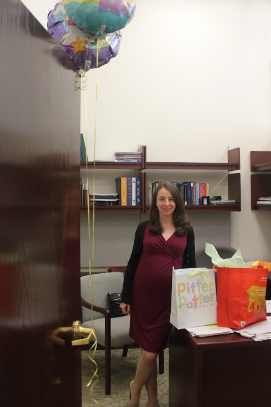 On Wednesday Sasha's colleagues threw her a baby shower at work.