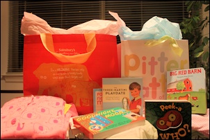 We received cute presents including several American classic children books, such as "Big Red Barn" and "Goodnight Moon".