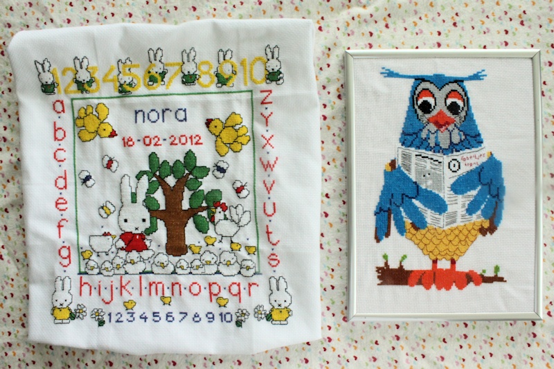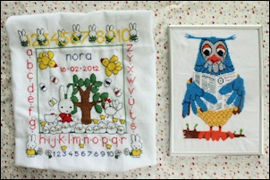 Last week, within a few days of each other, Nora received two beautiful gifts from her Oma and her Tante. Two embroidered wall decorations, in Nijntje and Fabeltjeskrant style.