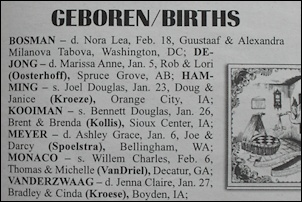 Most of the announcements are by second or third generation Dutch immigrants in areas such as Sioux Center, IA or Orange City, IA. It's nice to see Nora's name in print again.