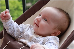 In the morning, after her feeding, we put her in her chair and ten minutes later she started crying. Diaper was clean, food had been provided and she had just slept, so I picked her up to see what was going on. The answer was clearly that she wanted company, because she started smiling and cooing to us. Slowly but surely she's turning into a person with real social behaviors.