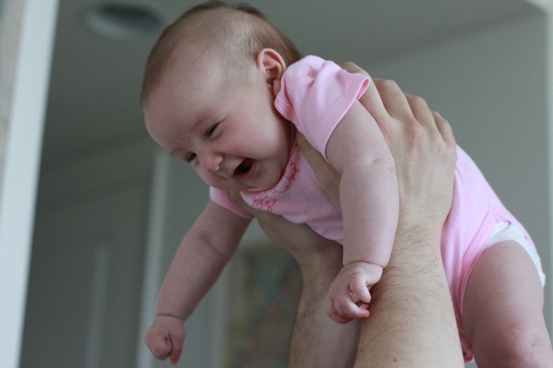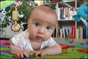 Every day she spends more time on her tummy, and she's really getting better and better at holding up her head. There are even some early experiments on learning how to turn.