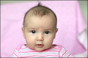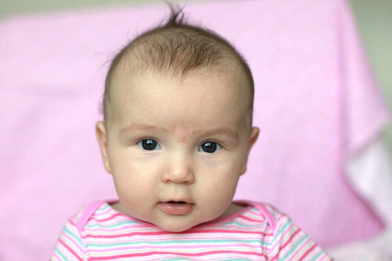 This morning we brought Nora to the pediatrician for her four month check-up. She is healthy and growing well. She's now 14.4 lbs (6.5 kg).
