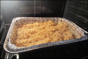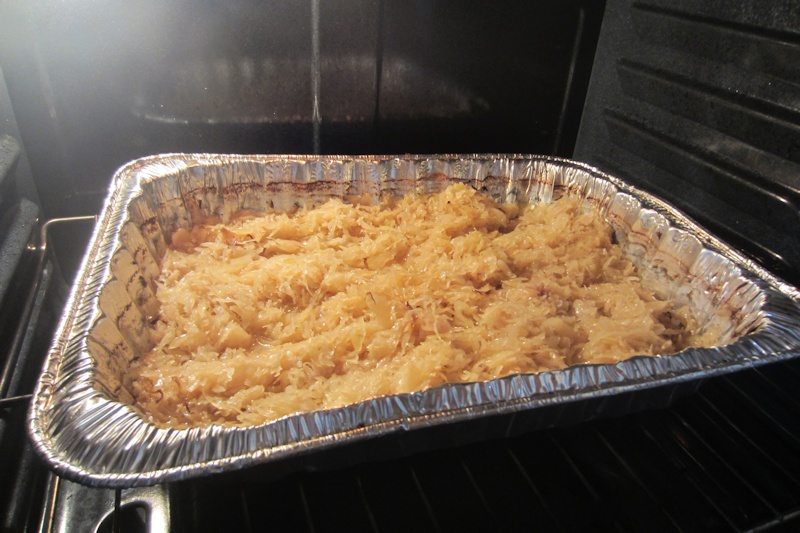 This is the sauerkraut halfway its baking. It has the right amount of juice in it but needs to become a little more crunchy.