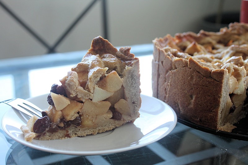 Last night I baked an appeltaart, a Dutch apple pie, from my father's recipe. It turned out great. Nora had a few bites of smashed pie and she liked it.