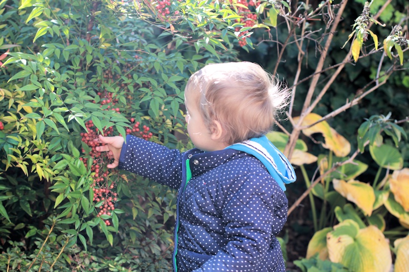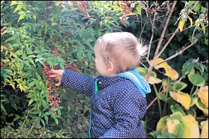 This morning we went for a walk to Washington-Lee, the high school near us. It's less than half a mile but we took our time since Nora was walking with us. Since a few weeks we let her walk longer distances, without the stroller, and she loves it. She stops and looks at everything: flowers, stones, carved pumpkins ("poes!").