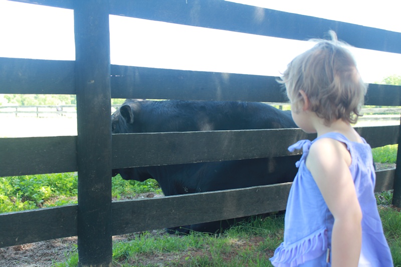We had a good time. Nora even touched a calf ("aaien!"). She was very impressed by the sheep shearing and wasn't sure what to make of it.