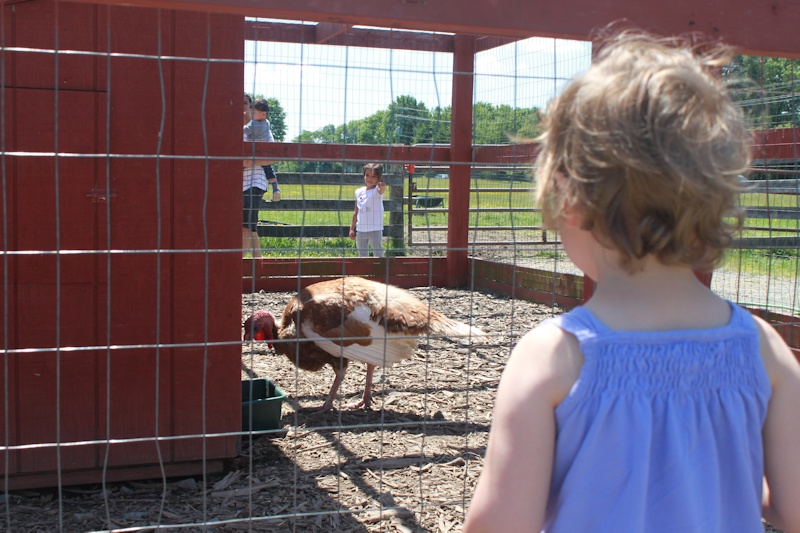 Nora was looking forward to it and remembered her previous visits. She knew where the turkeys where, and the pigs, and we both wanted to see the horse ("aan het nadenken") but the horse was somewhere else this time.