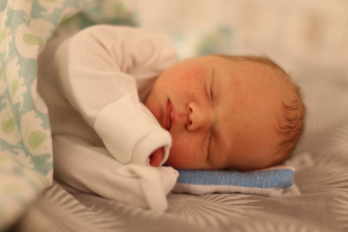 Leo gained a good amount of weight since his birth and he is strong. At the pediatrician, he rolled over already.