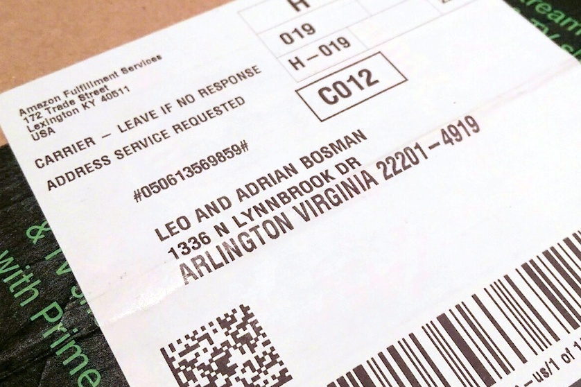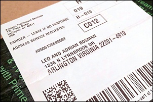 It was a very icy day and our front steps are slippery so the mailman left our Amazon package for today down the stairs: another huge box of diapers, but now in the next size up (size 1). We go through a huge amount of diapers per day. It's great to be able to order everything without having to leave the house -- we even bought a new garbage can online.