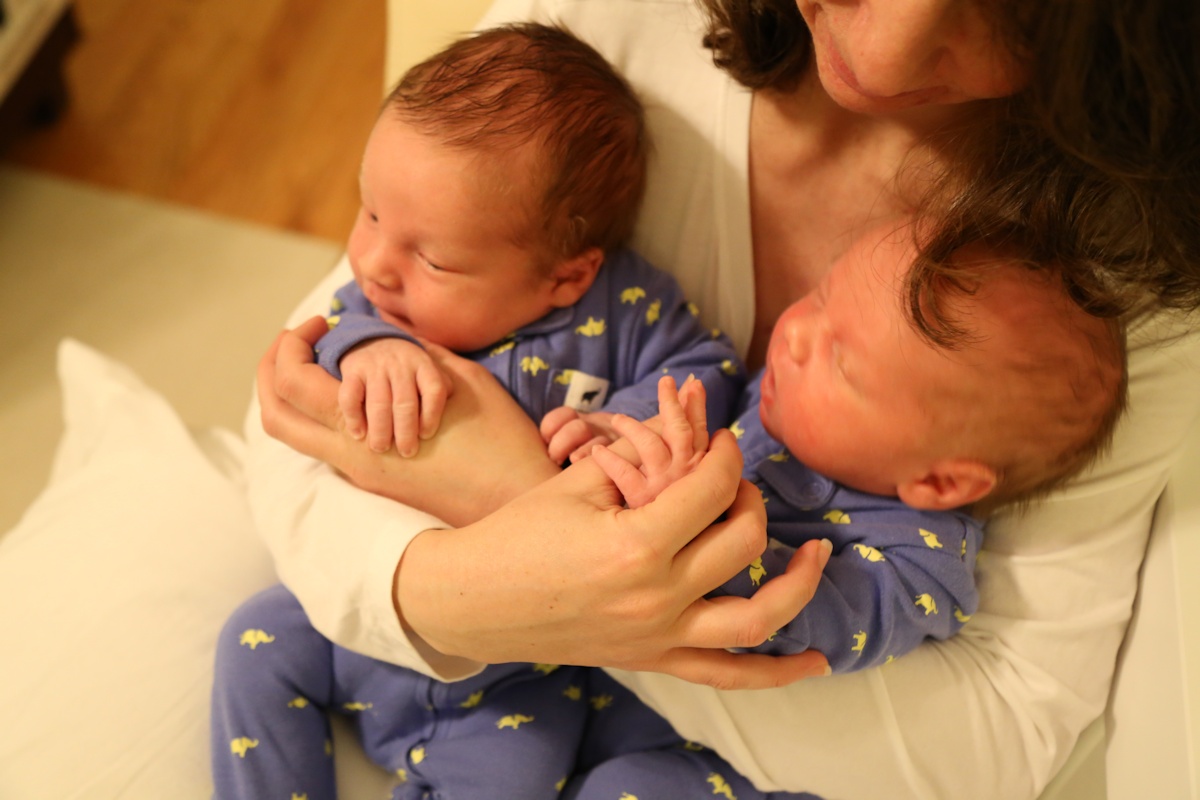 So far I can say that twins are harder because there is more work but it is not twice as hard as one baby, thankfully. It is also very helpful that we have been through all this before: it is less scary and we care less about the small stuff.