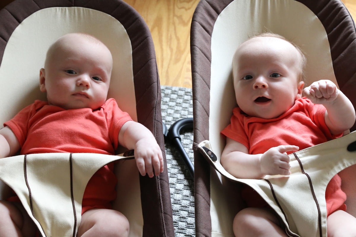 The guys are now three months old, so we've made it through the hectic first quarter of life with them.
