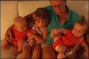 We said goodbye this morning to my parents, after five wonderful weeks together. They looked after Leo and Adrian for the first three weeks and then Nora joined their gang. Her Dutch was a little shaky the first few days but she quickly found her mo-yo back. Every morning there would be two new books from Oma on the living room table.