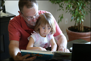 "Opa, wil je alsjeblieft met mij een boek lezen?" Nora becomes super polite when she wants to be read a book.