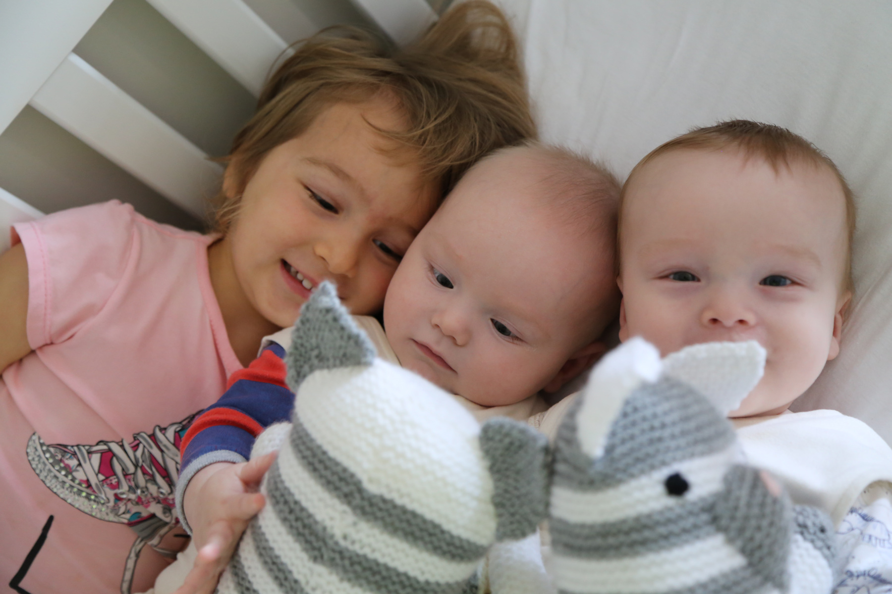 Every now and then the boys are smiling at each other, especially now that they're in highchairs. And when they drop a toy, Nora will pick it up and give it back: "hier, jongen!"