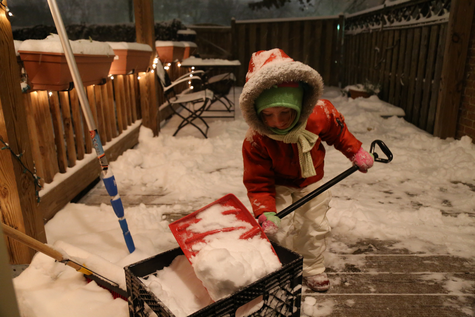 We had a great snow day today. I shoveled in the evening so we had a nice path on the deck and in the front to our neighbors.