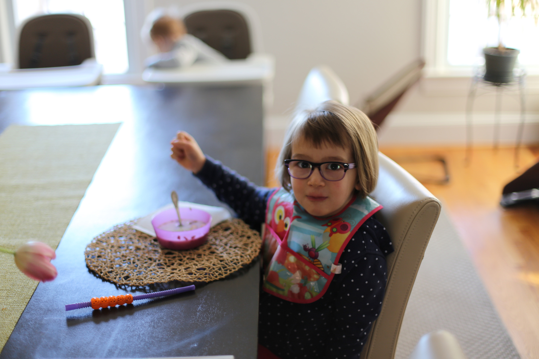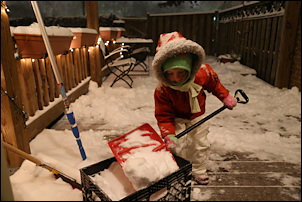 Here she is, before dinner. Sasha asked: "shall we read a book or do you want to shovel?"