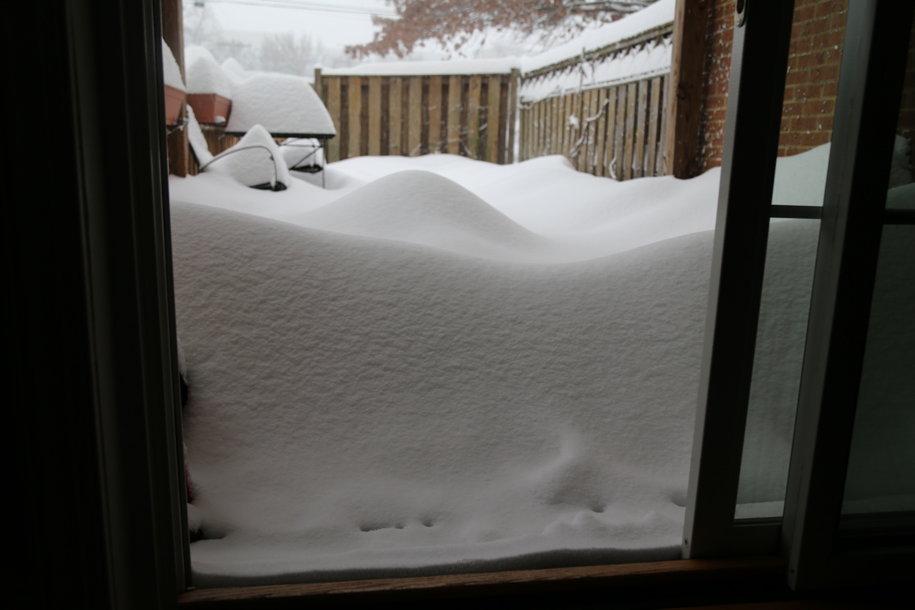 It's still snowing, more than 24 hours later. The paths we made in the morning are completely covered again.