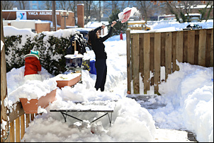 When the boys were in bed we went outside and cleaned the deck and made more paths in the snow on Lynnbrook. Ginny came over, and we chatted with many of our other neighbors too.
