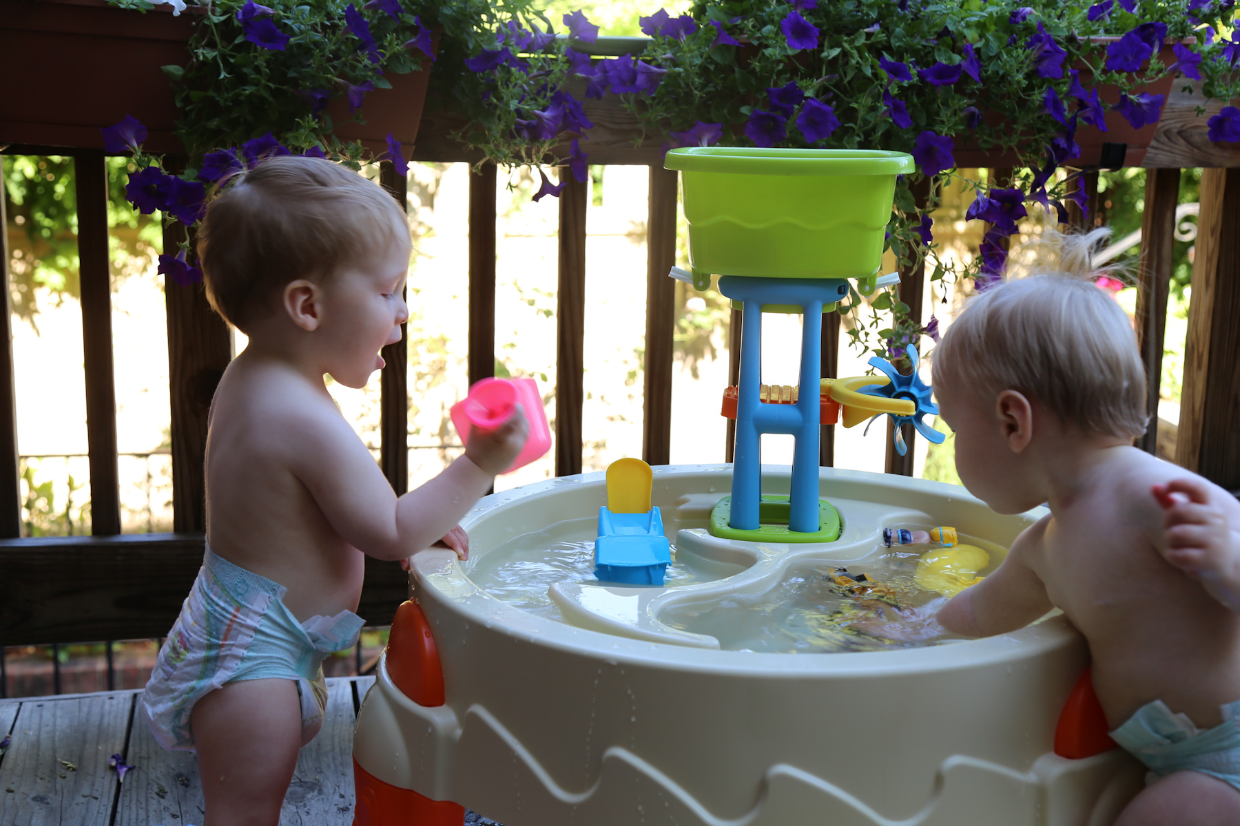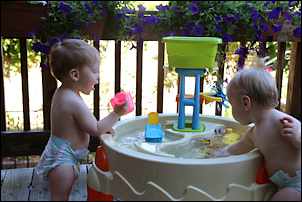 Leo, Adrian and Nora are having a lot of fun with their new water table.