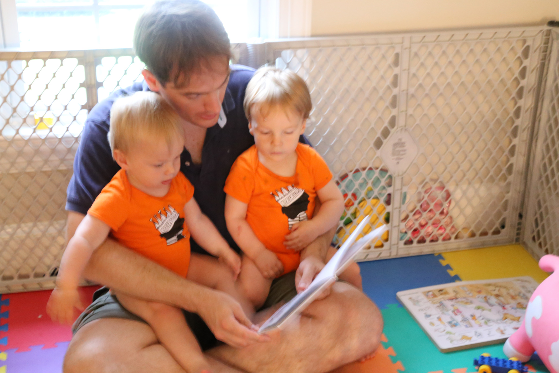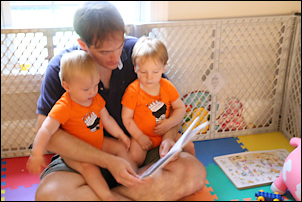 There was a big thunderstorm over Arlington last night, and around 10.30 pm Adrian woke up crying. He was clearly scared so I took him downstairs, where he cuddled with Sasha for a long time. He was happy to be with us.