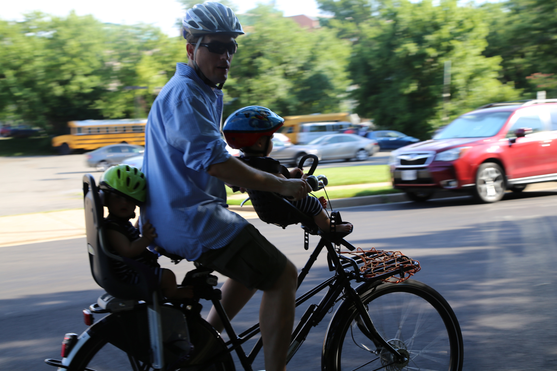When they went to bed Sasha and I both swam individually. In the afternoon we went for a walk and early dinner at the Four Sister's, after watering the plants at Nora's school. When I went there to switch off the water I took both boys with me on the bike, that was fun.