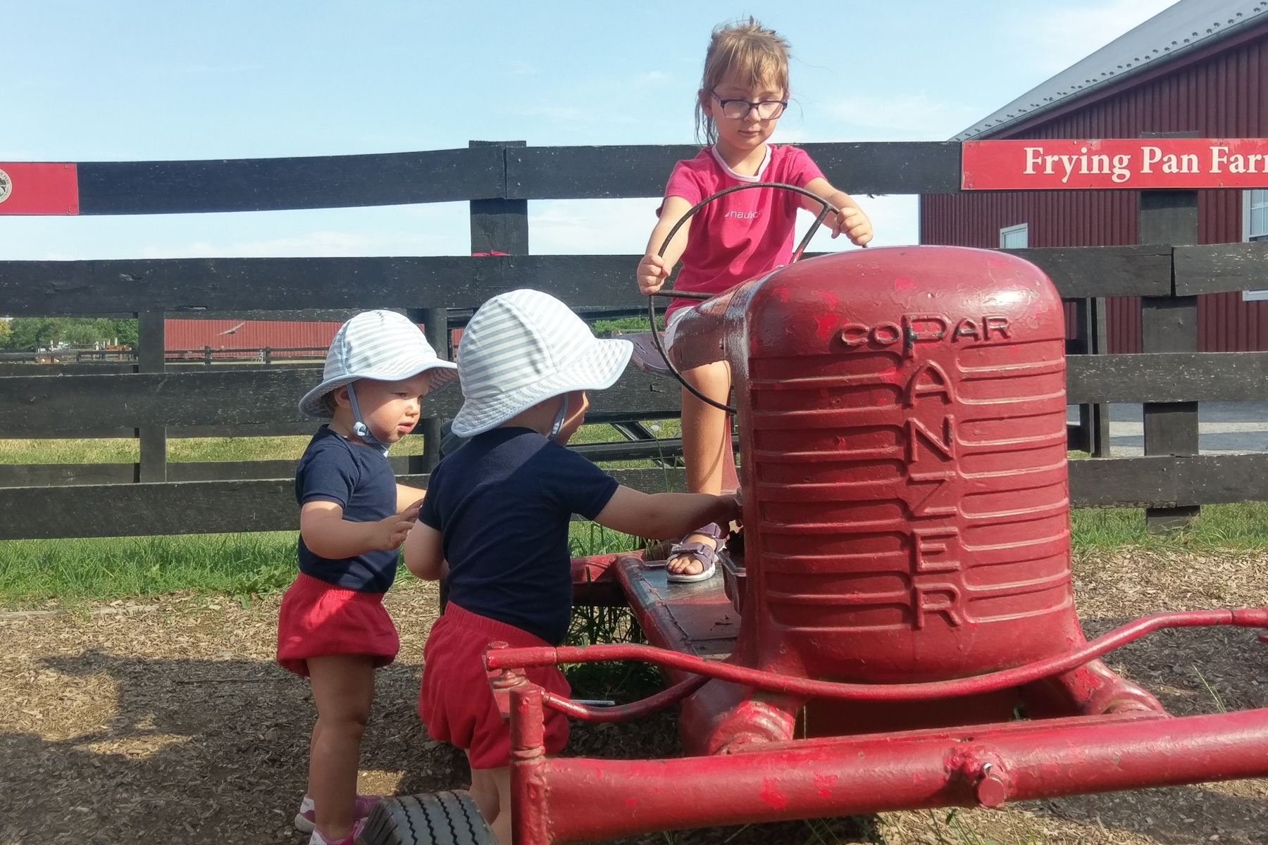 This was the first visit for Leo and Adrian, and the first time they saw cows and horses and ducks -- they loved it. Of all the things, the tractor made the biggest impression. Adrian in particular was mesmerized.