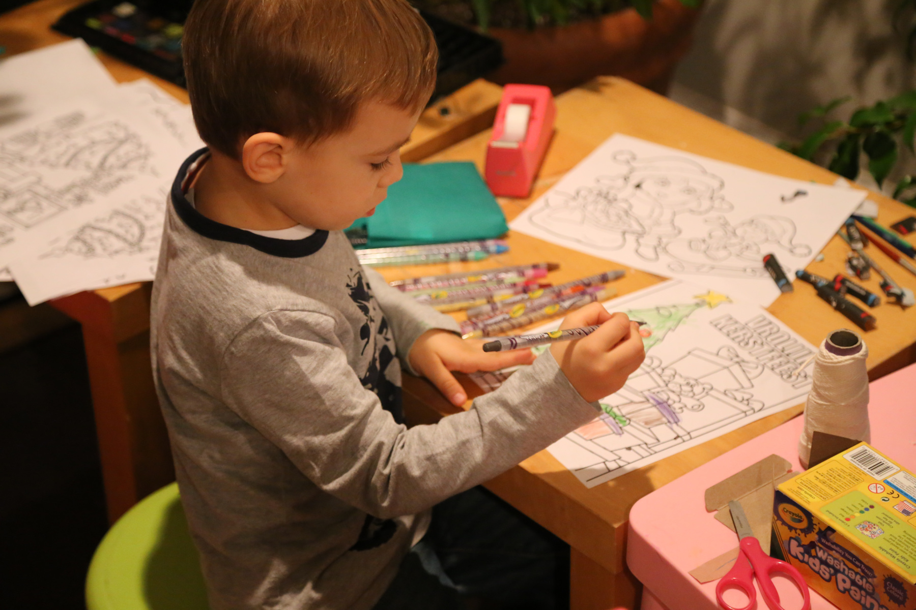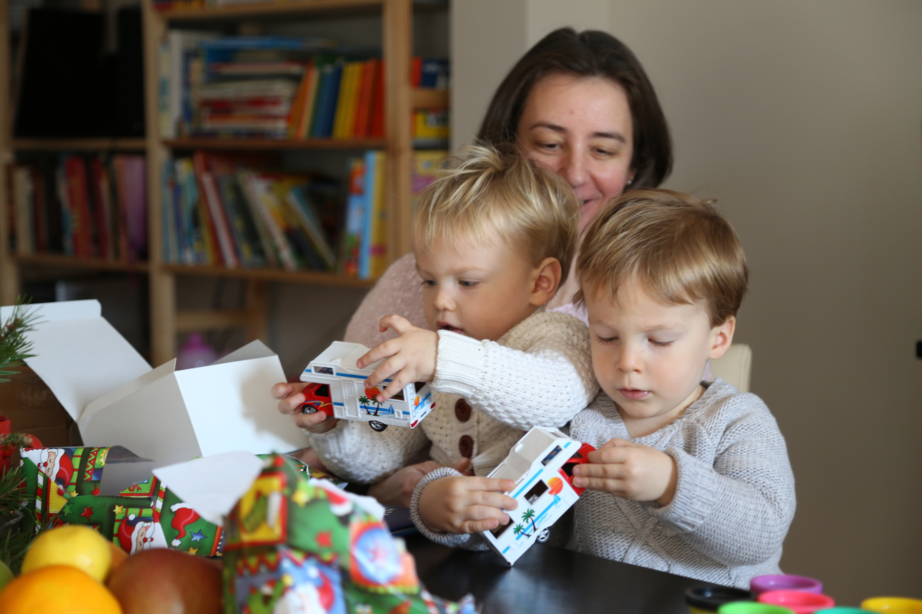 Nora received a large present: a large cardboard house to draw on. The boys were very pleased with their "bus", a camper that from Rado & Maria.