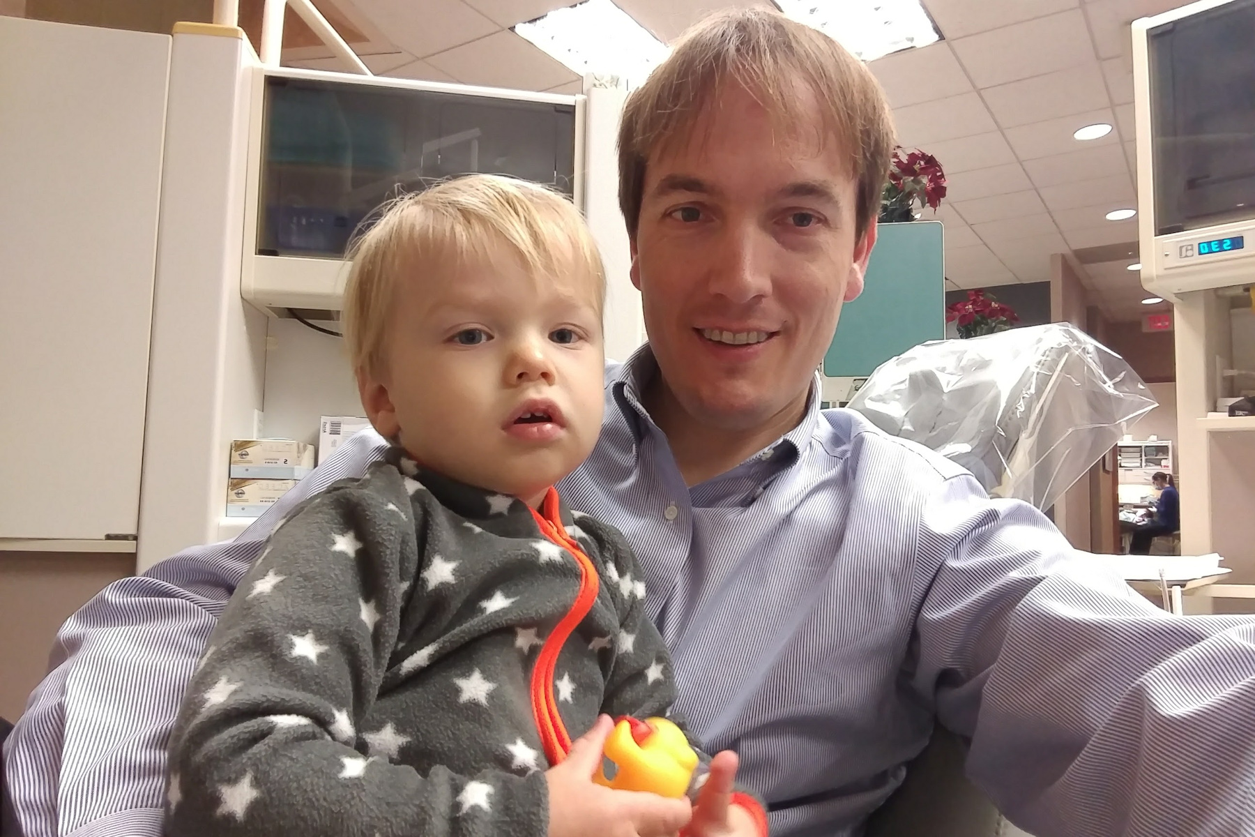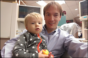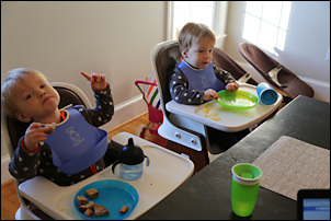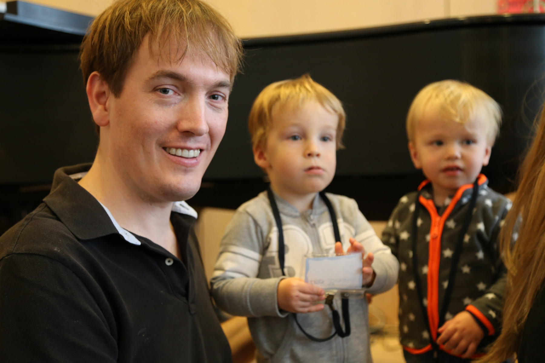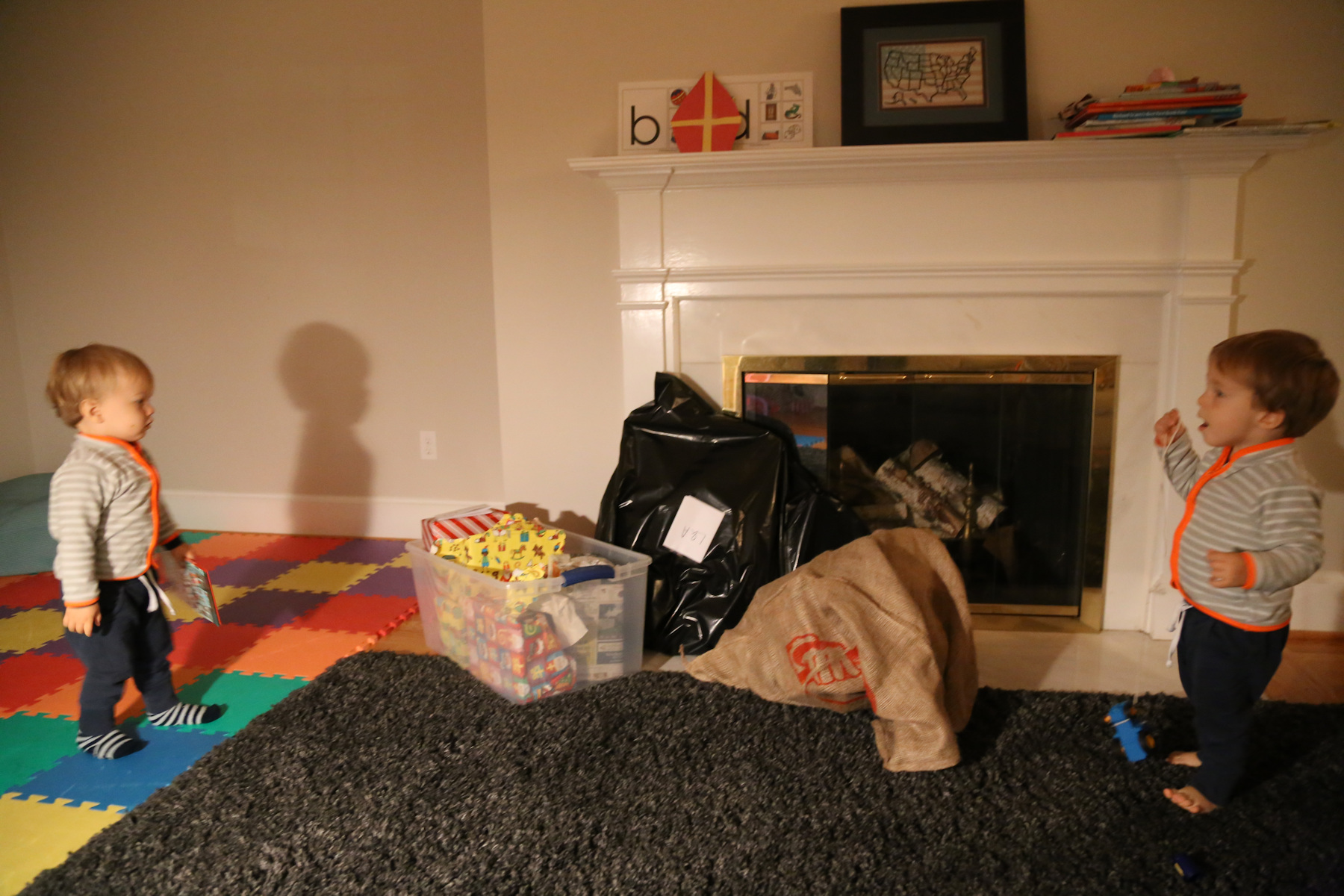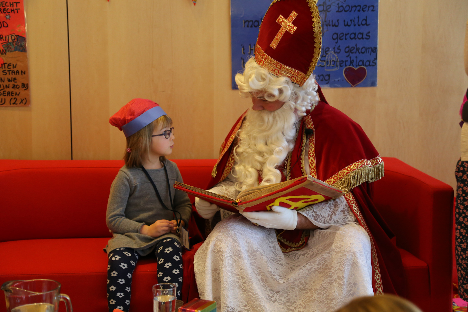 The boys were both quite impressed. Sasha was holding Leo, and I was holding Adrian and Nora when he arrived in the main hall. Adrian was staring with wide open eyes. Later, in the smaller room, he was pointing several times and yelling: "kaas! kaas!" (He can't say "klaas" yet).