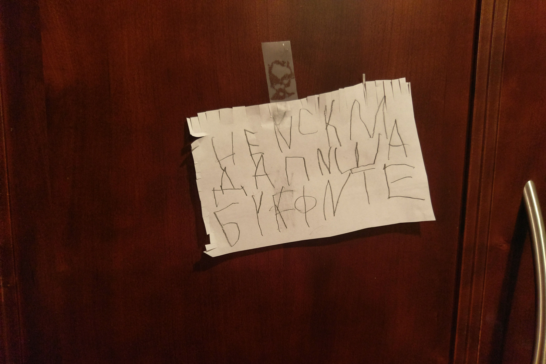 Only a five year old will carefully spend 10 minutes painstakingly writing letter by letter: "I don't want to write letters".