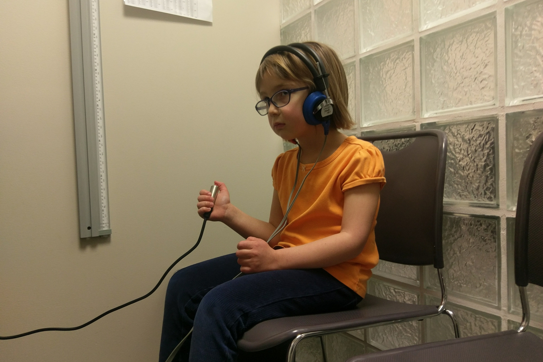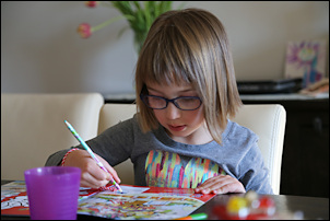 We brought Nora for her 5 year checkup. When we were at the eye doctor a few days ago, her eyesight was fine, but today the test didn't go well at all -- Nora couldn't see anything, except the largest letters. The nurse was a little worried, and we were quite surprised.
