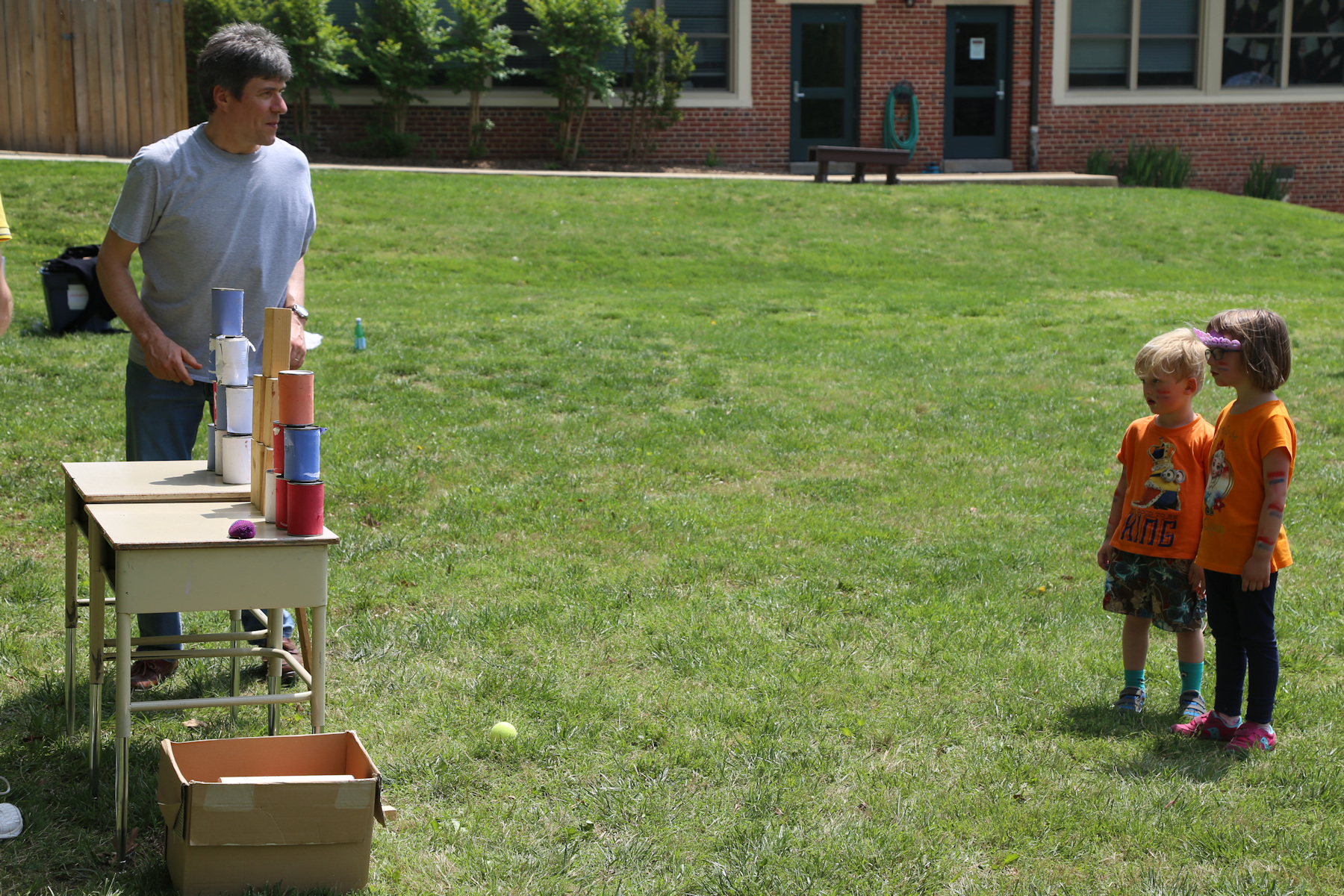 It was very warm. In the end we went to the small playground overlooking the activities, where we had our sandwiches and water.