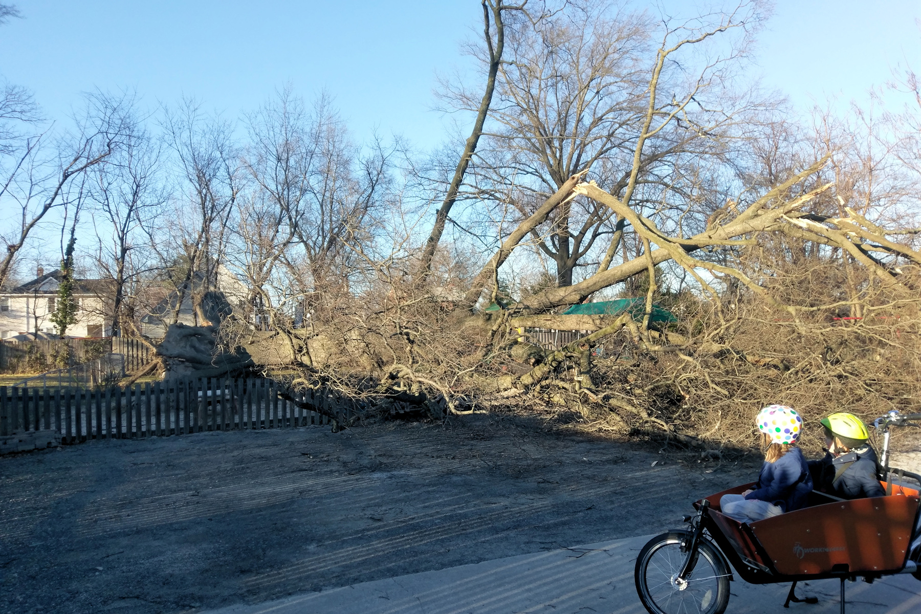 Last Friday there was a big storm and the big tree at Nora's school fell over. Kind of sad, it was big beautiful tree.