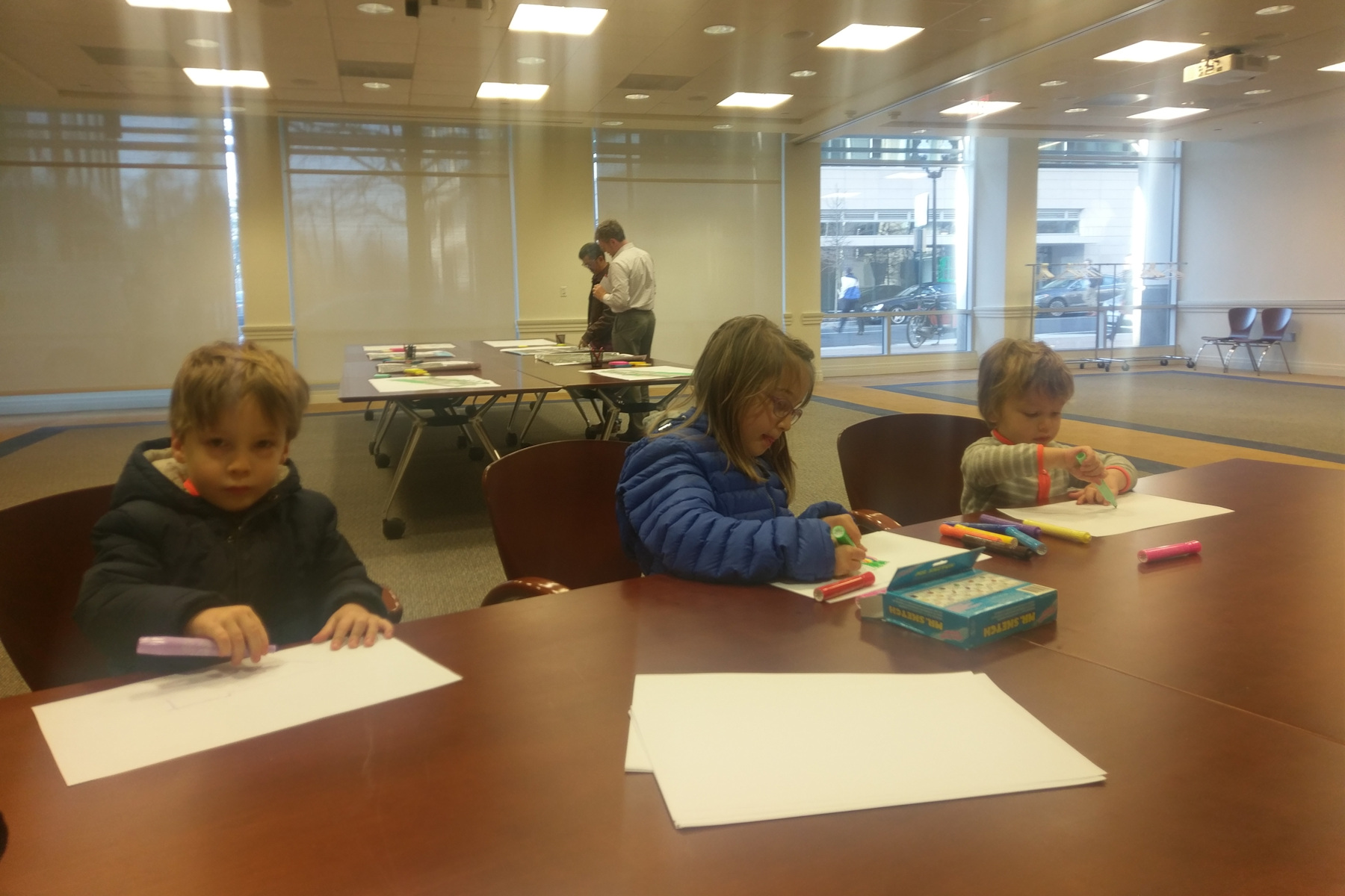 For the kids there was coloring and I spoke with two of the designers which was nice. The proposal is really nice, they even have a special bus stop that doesn't infringe on the bike lane.