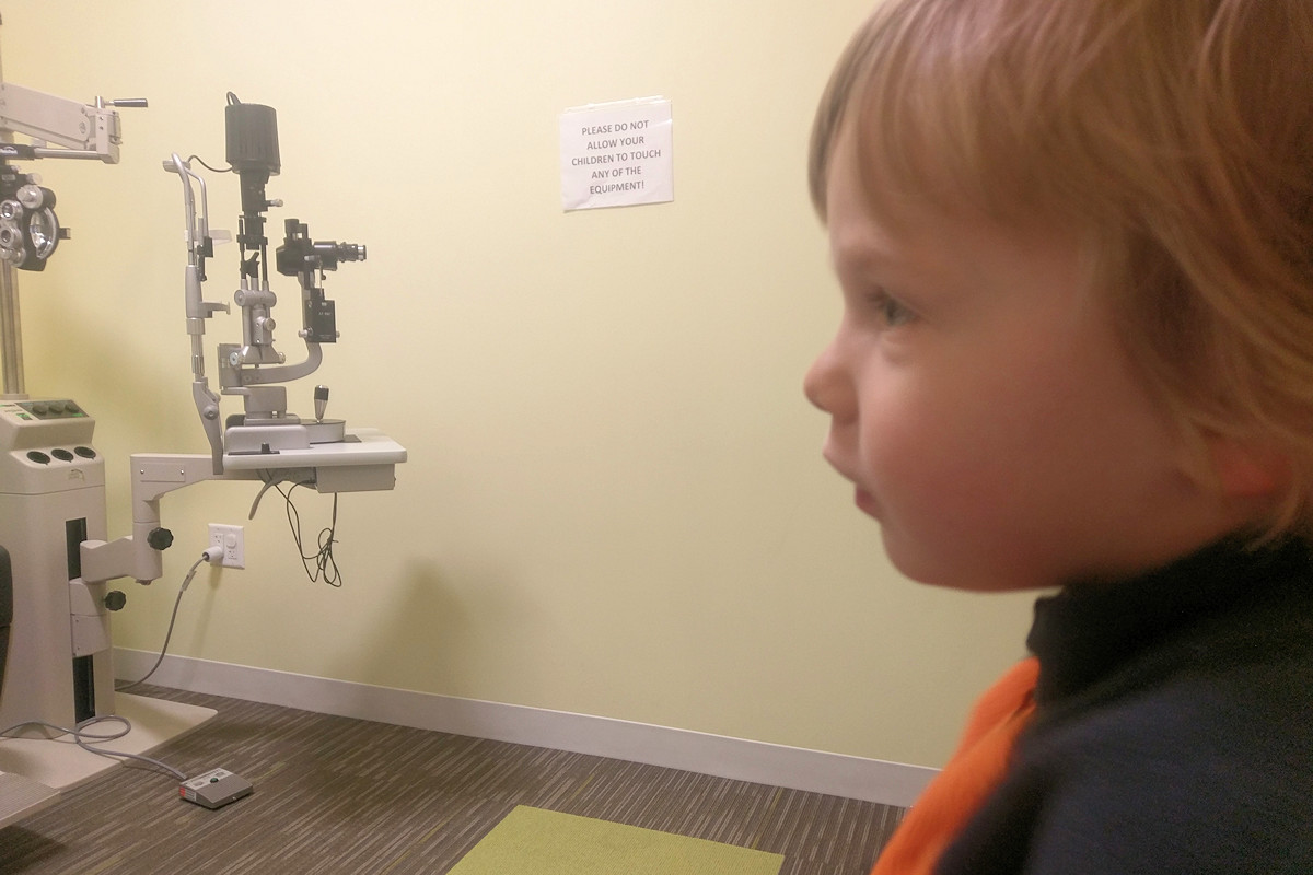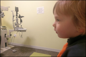 Adrian bumped into the handle of the gate in the yard yesterday. His eye was red and we took him to the eye doctor today.