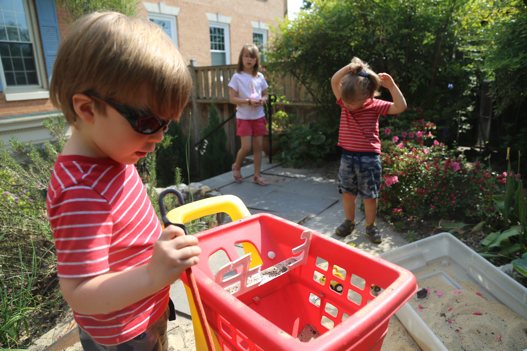 We also went to Home Depot to get new play sand; it ends up in the yard quickly. Told the boys that "feeding the plants" with sand isn't necessary.