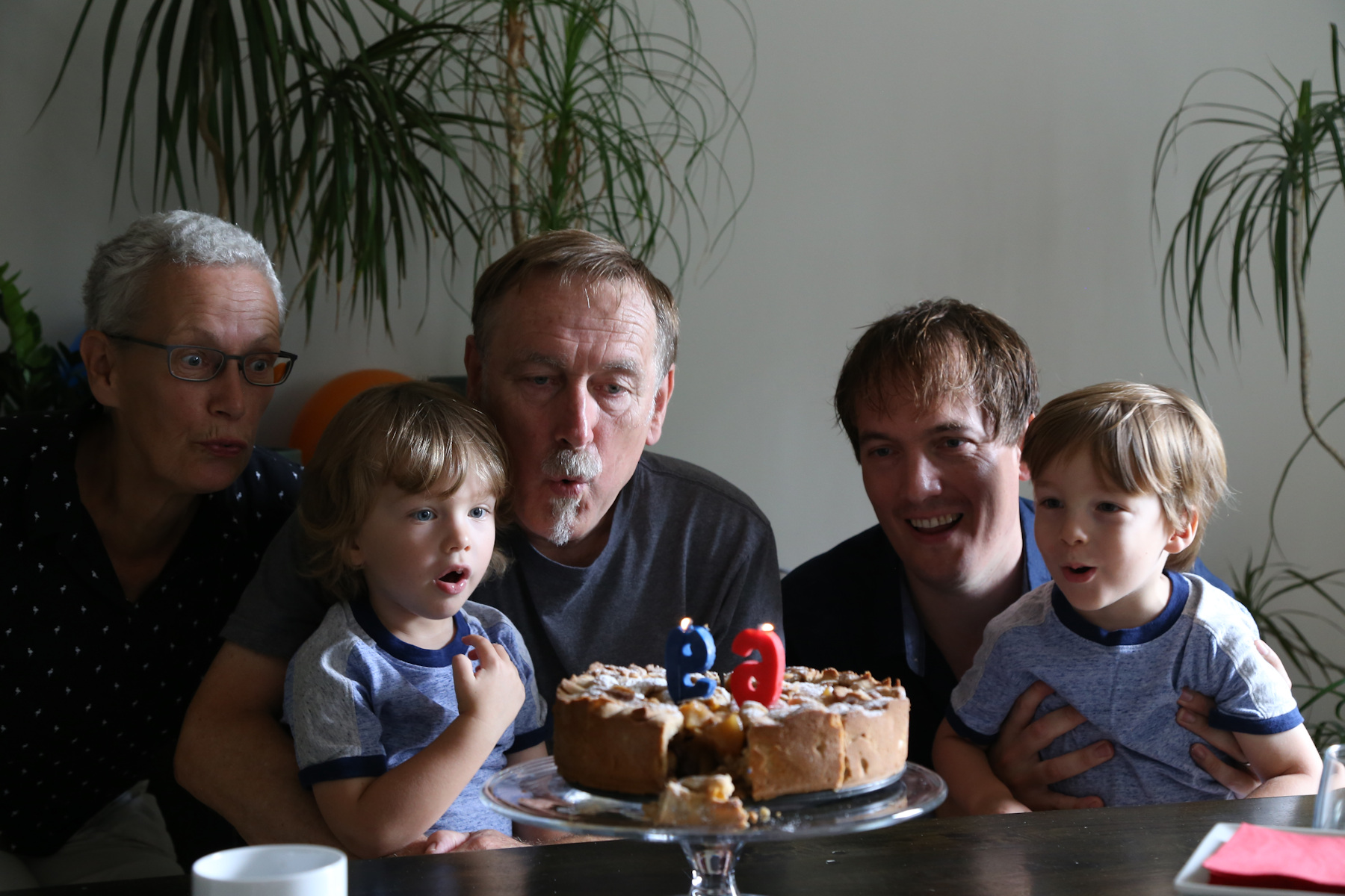 We celebrated Jaap's birthday together, a nice milestone. In the morning there were gifts -- mostly of the literary persuasion. Later in the day Judy and Ginny joined us for coffee and home-made apple pie.