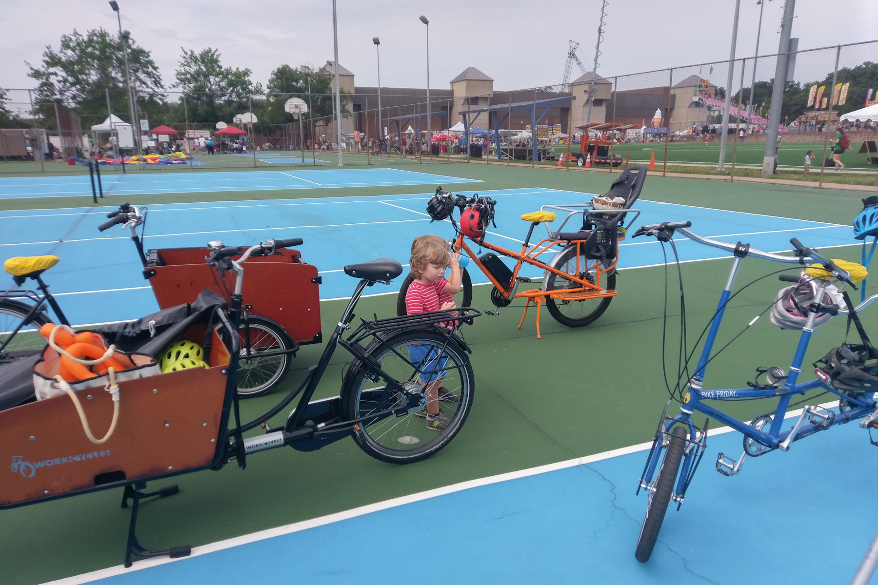 This morning we went to the Arlington County Fair, the kermis. Jaap and Mieke walked, I took the kids with the bakfiets. That was a lot of fun, the boys in particular liked crossing the highway on a bike bridge.