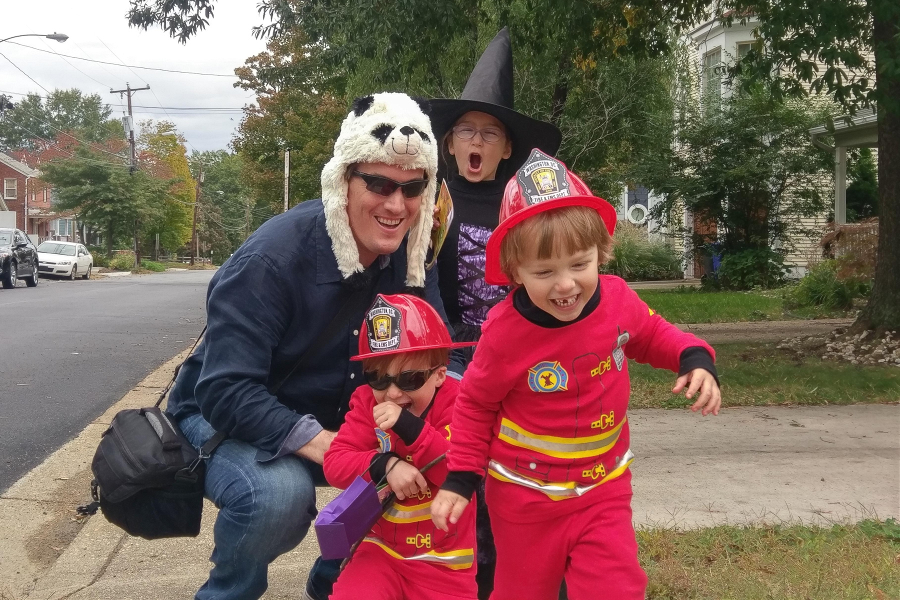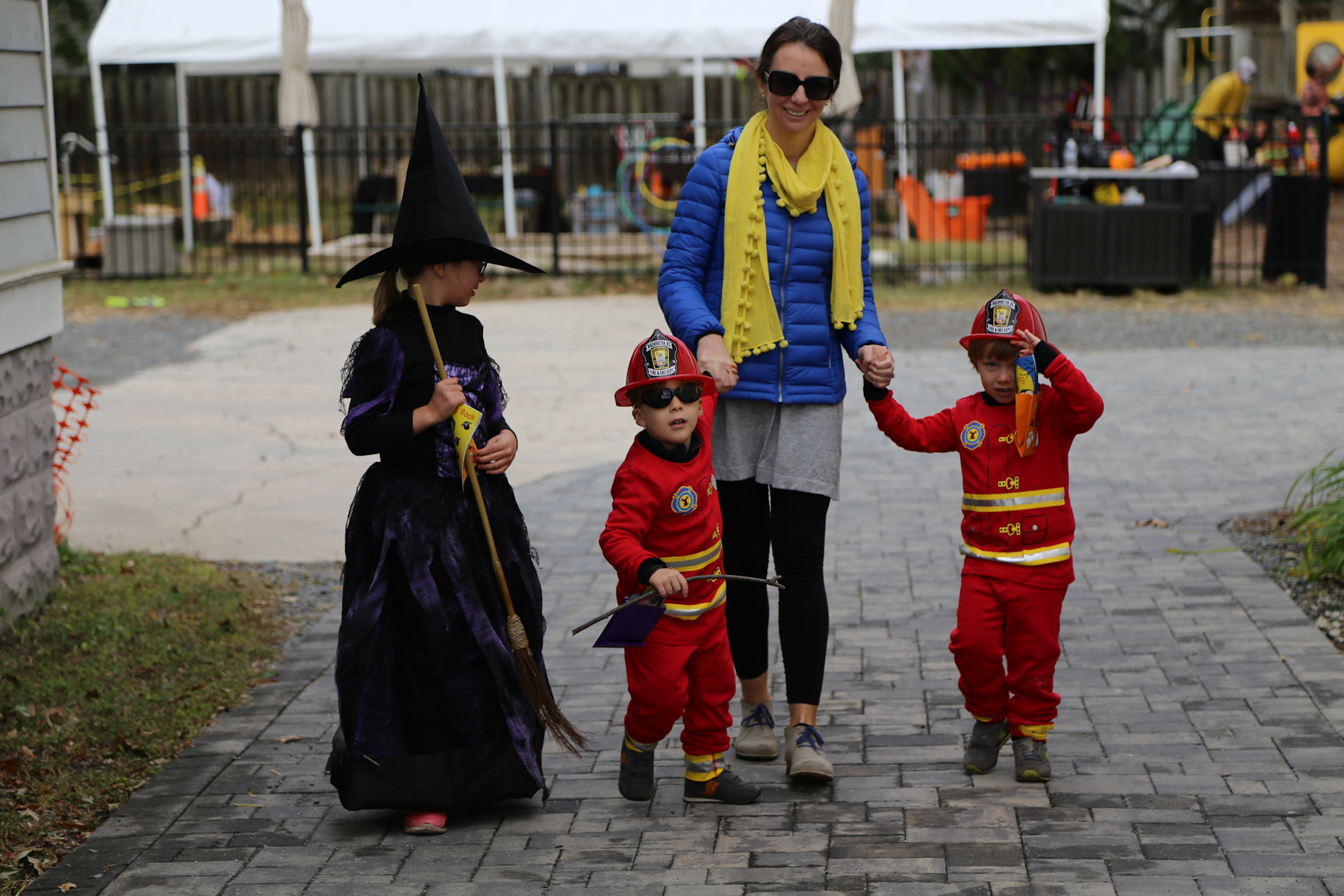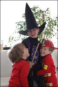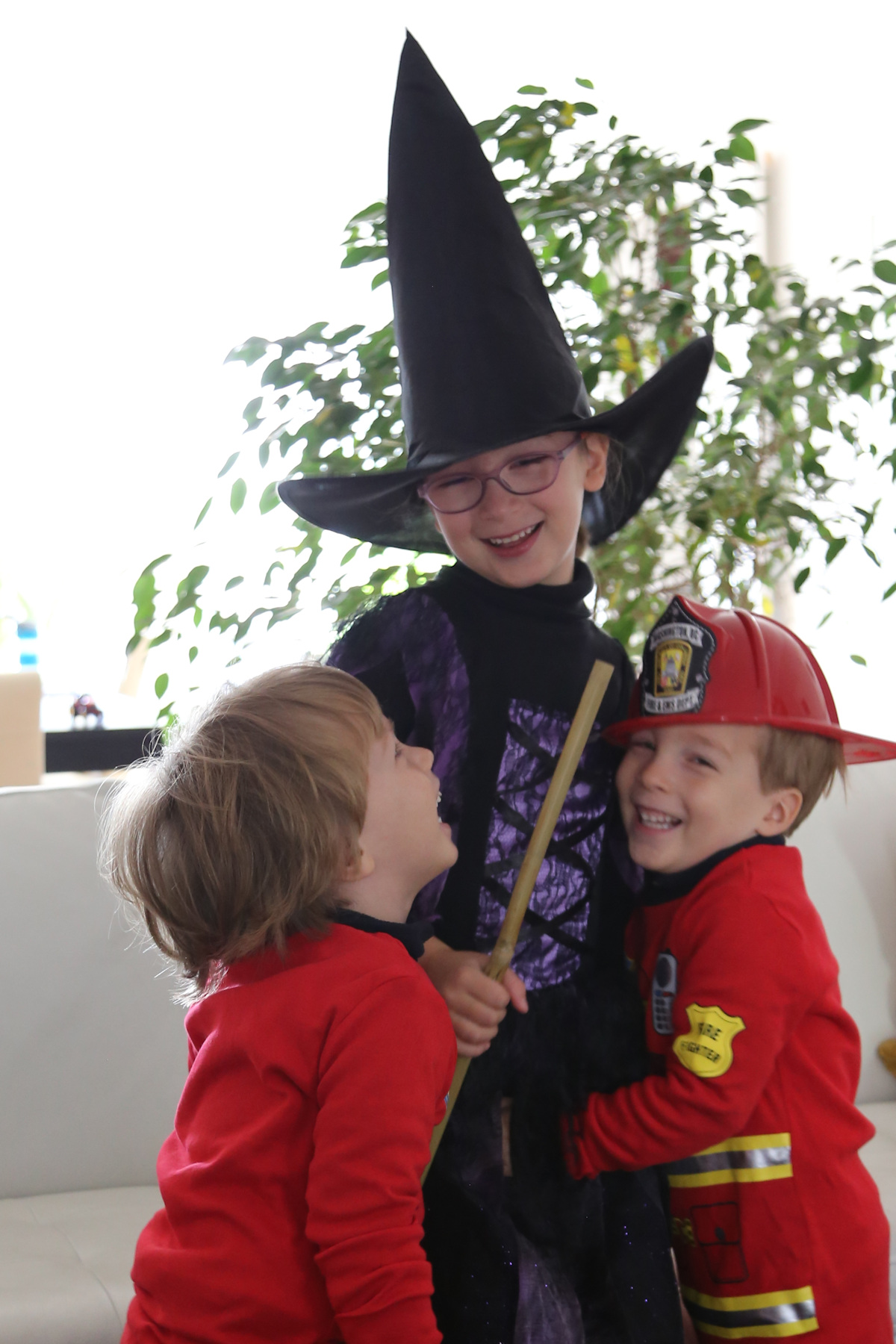 Nora's witch costume worked really well -- after some tears over whether or not to wear a sweater underneath -- and the boys were terrific in their firemen outfits.