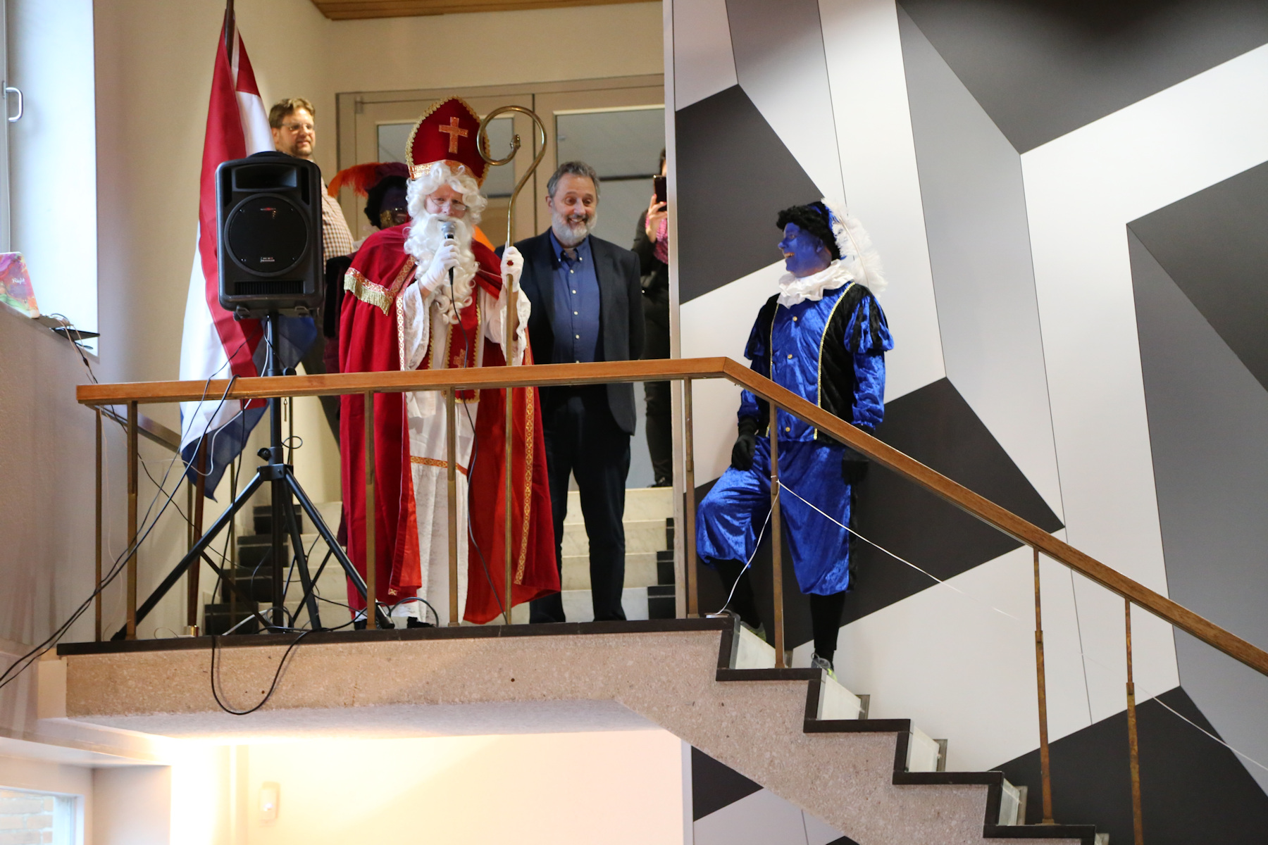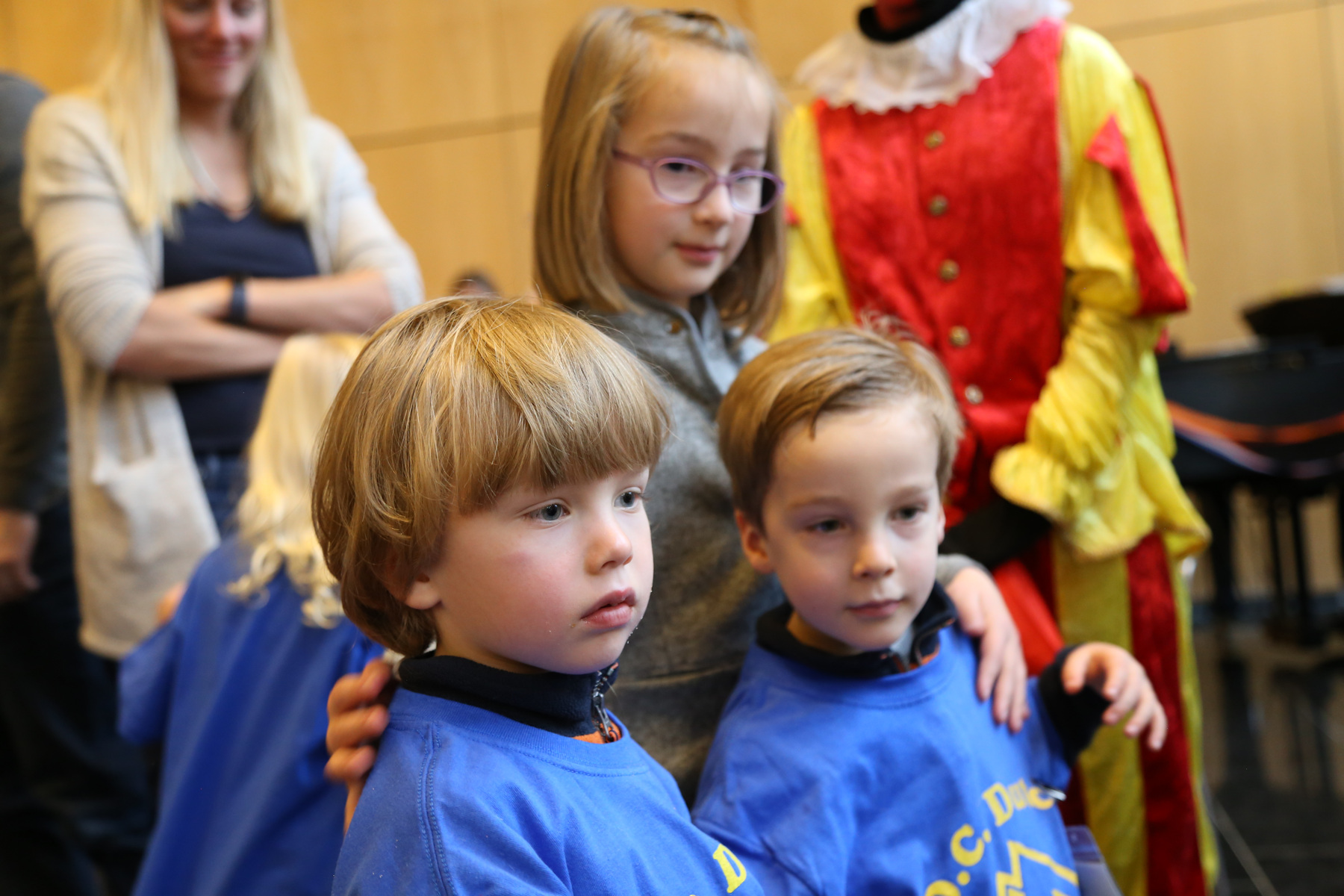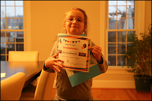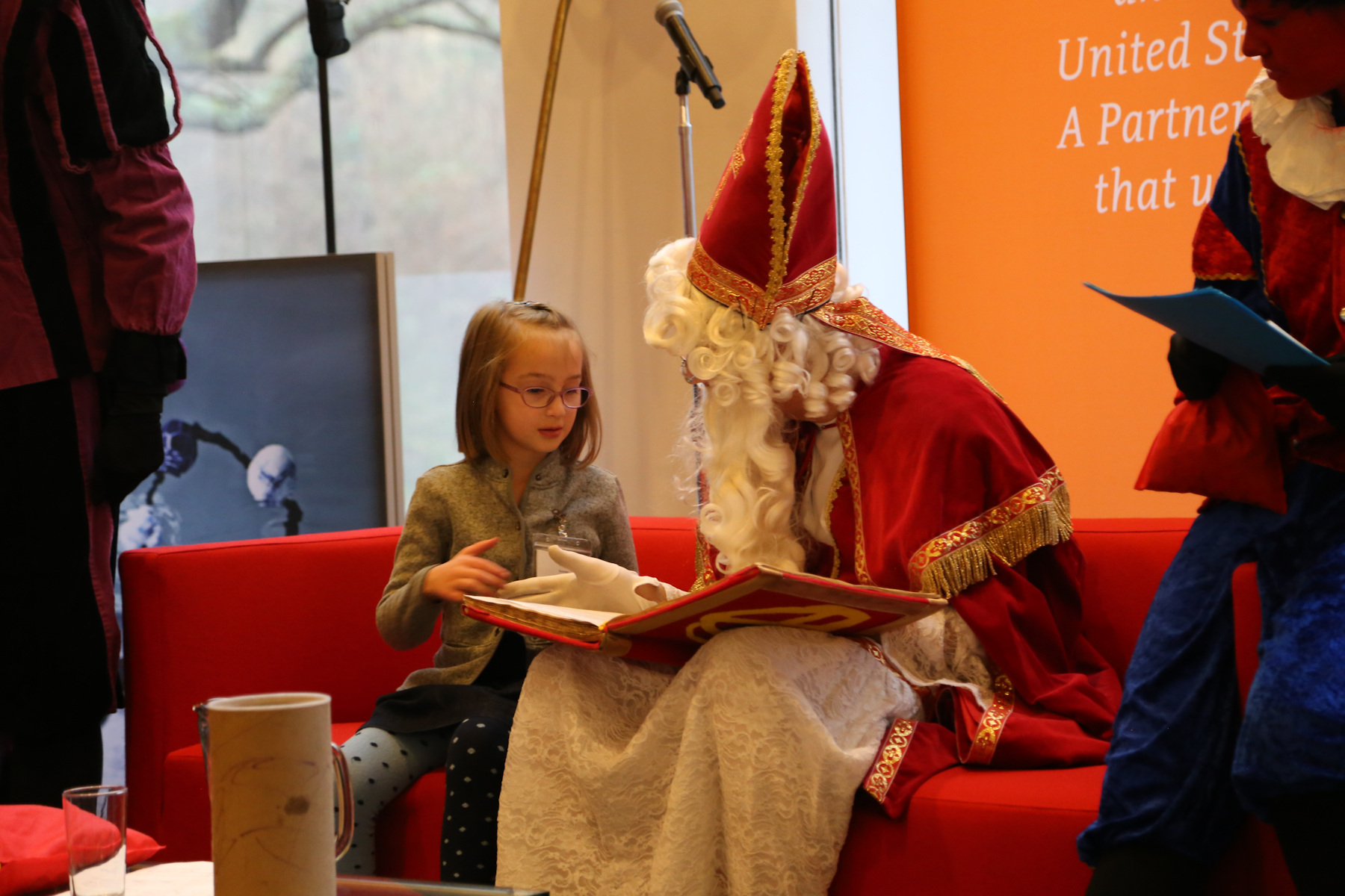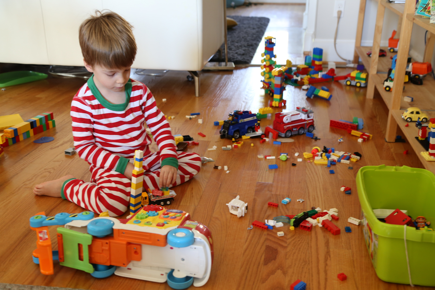 In the morning the boys were downstairs for a while... then I saw Adrian walking around with a dustpan. When I asked what happened, Leo explained that they were kicking the big blue exercise ball, it bounced off the fireplace and then hit the tree and broke one of the Christmas balls. "We waren erg geschrokken", said Leo. Other than that, no damage so far.
